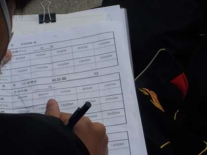 2人ペアになり、応援の声かけをしたり、記録を記入します。
