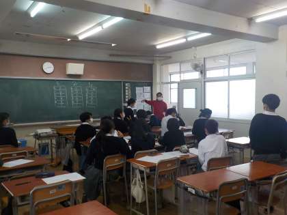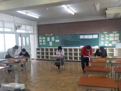 11月10日(水)6校時 2年生 職場調べの取り組み3 公開日 2021/11/10 更新日 2021/11/10 学校の様子 2年3組は、電話連絡のための控室です。 伝える内容を確認したり、電話で話をする練習が行われています。 少し緊張する時間かもしれません。 教員からの呼び出しを受けて、隣の少人数教室で各職場に電話でアンケートのお願いをします。 教員からのアドバイスを受けて、ていねいに電話対応をする姿を見ることができました。 いいね(0)