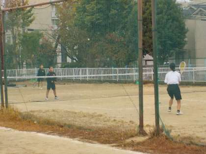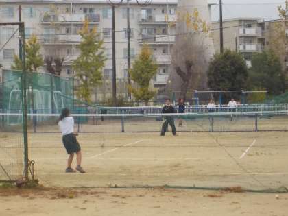 手前のコートでは、教員とストローク練習をしている生徒の様子が見られました。