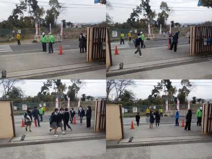 3学期が始まりました。2学期の終業式の日に引き続き、地域の方にも来ていただいています。たくさんの人数で行うあいさつ運動は活気があります。