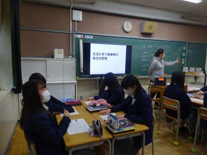 今日は、教室で保健の授業。