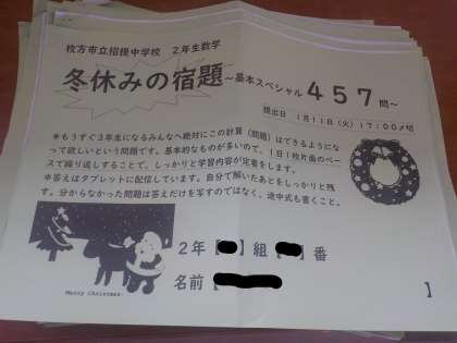 きっちり提出して、3学期の学習のスタートをきってほしいと思います。