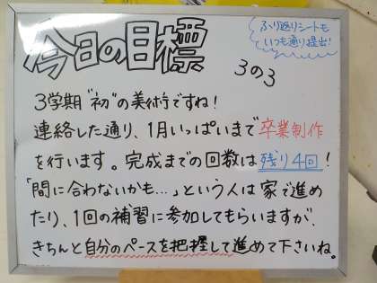 3年生の卒業記念作品への取組みもあと少しになりました。