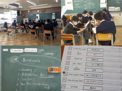 授業の段取りがわかりやすく示されています。タイマーを活用して、きっちりと時間配分ができています。