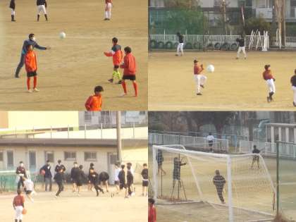 サッカー部は、パスの練習です。教員が投げたボールをていねいに受けとめています。