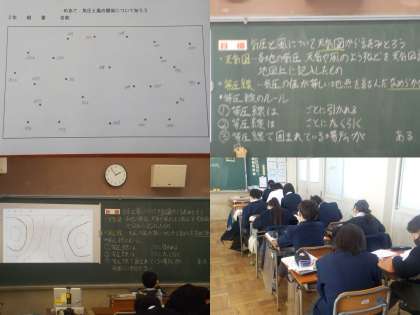 等圧線の図も活用して、教員がていねいに説明しています。