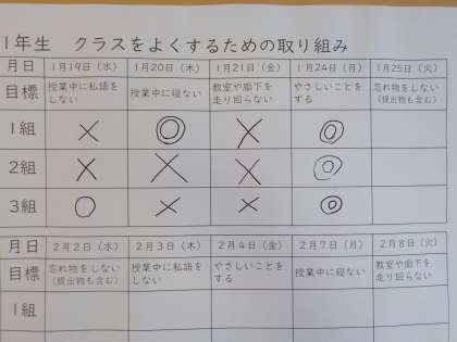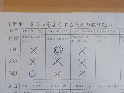 1月25日(火)1年生 クラスをよくするための取り組み 続報