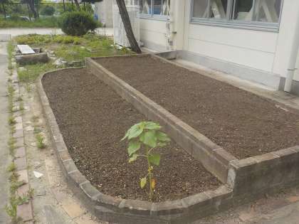 今年は、いよいよ明日に行われます。昨年のひまわりが一本残った花壇にたくさんの人が集まることになります。明日が楽しみです。