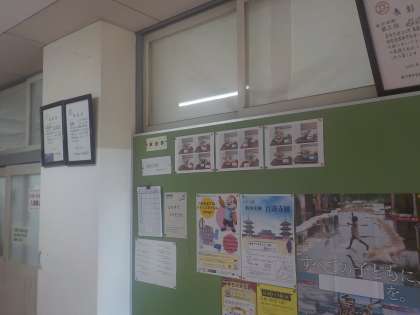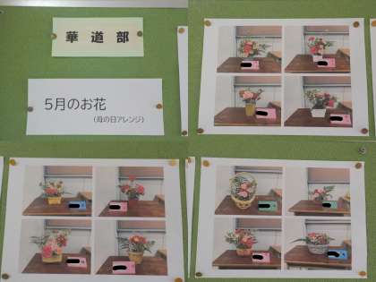 職員室前の掲示板に華道部の作品が掲示されています。
