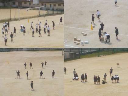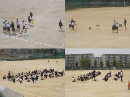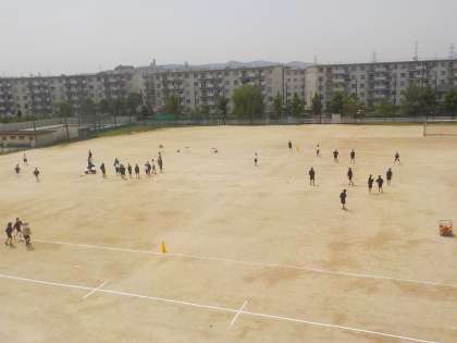 管理棟の2階からも見ると、改めて招提中のグランドの大きさが実感できます。