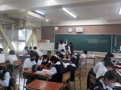 明日からの定期テストに向けて、班学習に取り組んでいます。