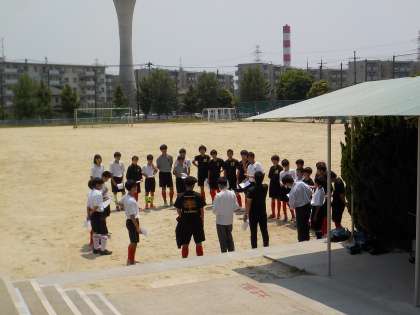 サッカー部は、ミーティングが行われてから、練習が始まりました。