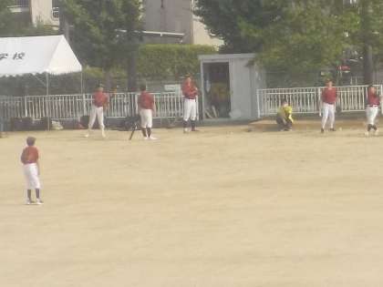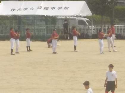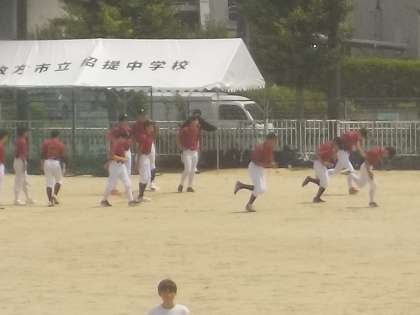 ストレッチ(写真上)、ダッシュ(写真中)、ノック(写真下)などの練習が、段取りよく行われています。