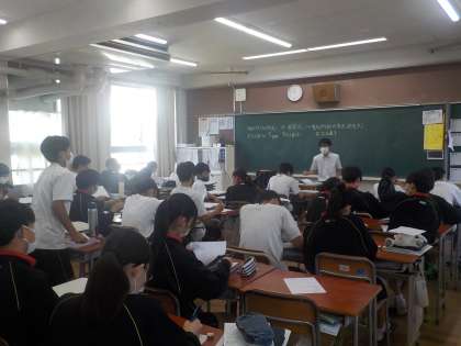 生徒を指名して答えさせたり、生徒の皆さんからの質問を受けたり、やり取りを行いながら、授業が進んでいきました。