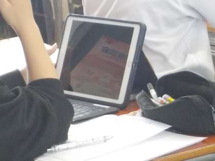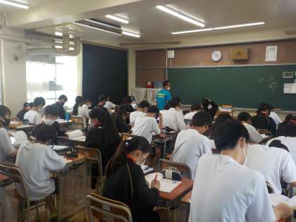 左の写真は課題に取り組む様子です。この後、仕上げた人から教員に提出することになります。