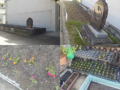 校門を入って、左側の創立30周年の記念碑の隣に、細長い花壇があります。