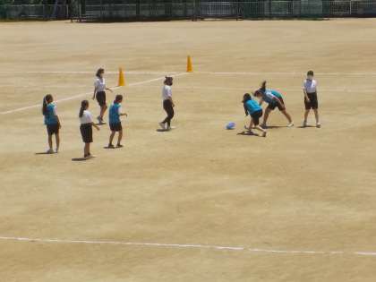 正式には7対7で行いますが、今日は3対3でゲームのルールを確認しながら行われました。