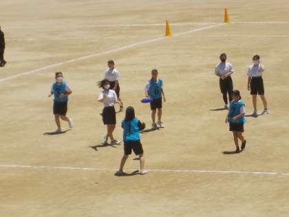 フライングディスクをパスしながら、相手チームのコート奥のエンドラインのエリアに持ち込むと得点になります。