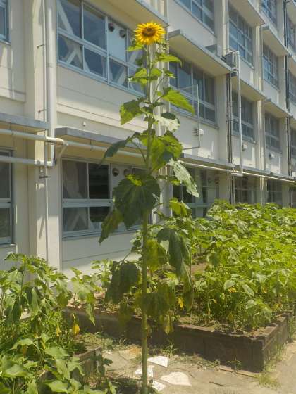 一本だけ咲いているひまわりの花が一番いい状態になっています。