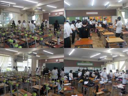 1年生の4クラスがそれぞれ掃除に取り組みました。