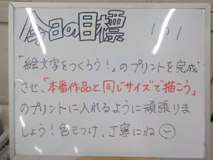 また、いつも思うことですが、美術室に入ったところに、今日の目標がわかりやすく提示されています。