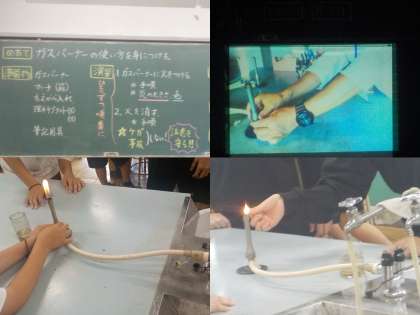 「ガスバーナーの使い方を身につける」が授業のめあてです。