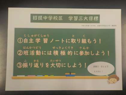 先日、学習に関する共通目標ができました。この目標のもと、3つの学校が協力して取り組んでいきます。