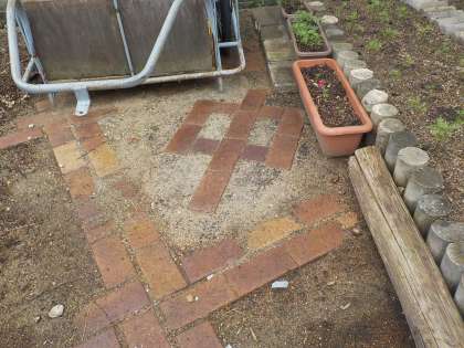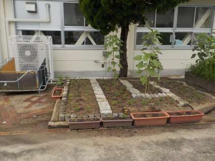 新しくつくられた花壇の横の土を掘ってみると、ご覧のような招提中の校章が見つかりました。