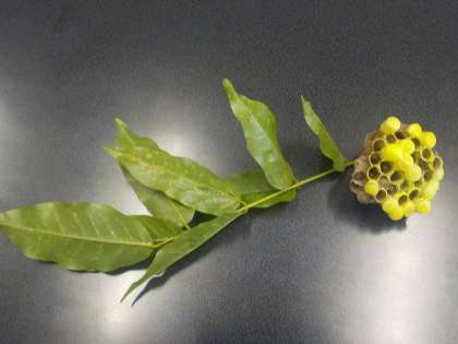 校門を入って右の藤棚の近くにハチの巣を発見し、撤去しました。