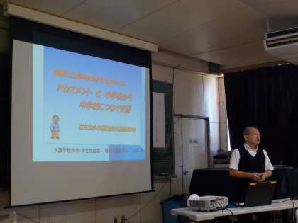 講師は、大阪学院大学 教育開発支援センターの山田 章先生で、「子どもへのアセスメントと小学校から中学校へつなぐ支援」をテーマにご講演をしていただきました。