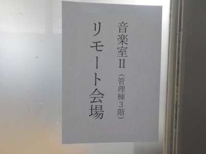 こちらは、リモート会場の様子です。講演会場の隣の部屋で行われ、同時進行の形をとっています。