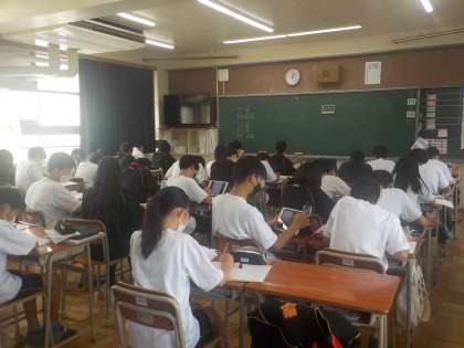 教員も机間指導を行い、質問に対しては資料なども活用して、ていねいに対応しています。