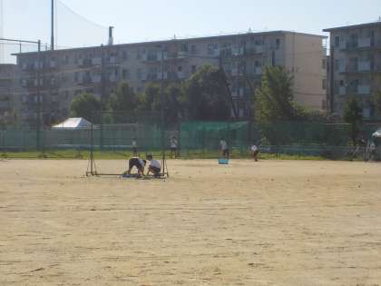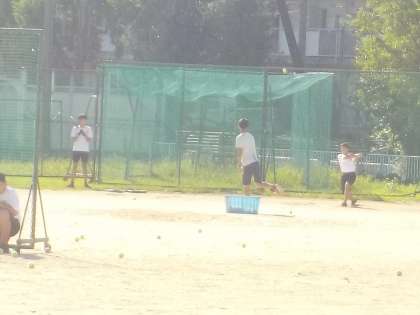 「パコッ」という鈍い音でボールもいつものように飛んでいないようです。