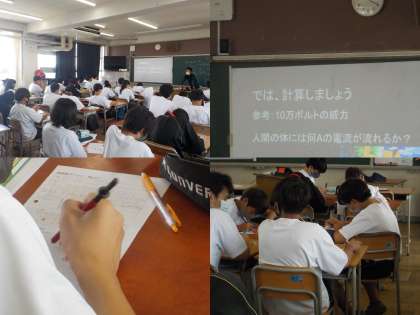 法則を理解した後は、「人間の体には何Aの電流が流れるのか」という具体的な課題に対して、班で話し合って、答えを導きだします。