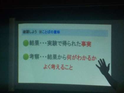 また、理科の実験などで大切な考察することや結果から事実をとらえることなどについてもじっくりと解説されました。