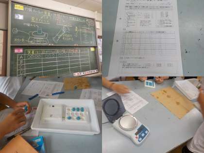 授業のめあてや実験方法、結果がわかりやすく、黒板にまとめられています。