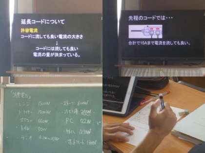 黒板に示された多くのものに電力が使われていることがわかります。
