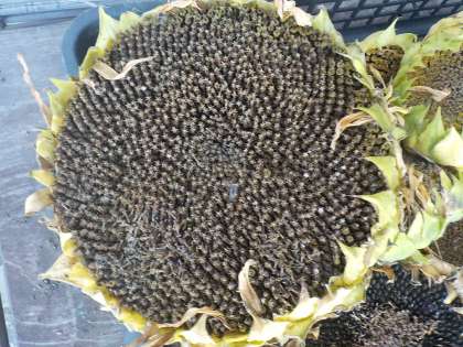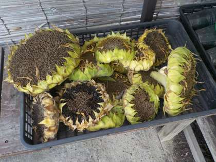 ご覧のようにひまわりの花が切り取られ、ここから来年にむけた種が収穫されます。