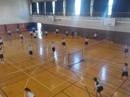 体育館でのバトミントンの授業です。