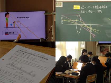 「凹レンズの練習問題を班で考えて解く」が授業のめあてです。