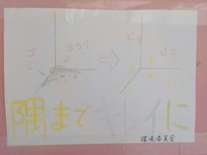 写真下は、環境委員会が作成した「隅までキレイに」のポスターです。