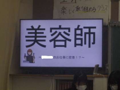写真は美容師の仕事についての発表です。