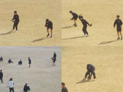 ソフトボールのゴロを取る練習です。