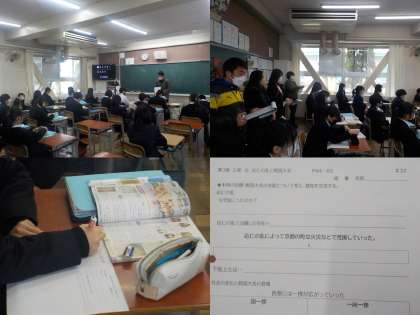 2月13日(月)5校時 1年1組 社会(初任者研究授業)