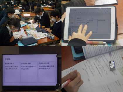 交流した内容はiPadのスライドを活用し、テレビ画面に投影し、全体で共有しました。