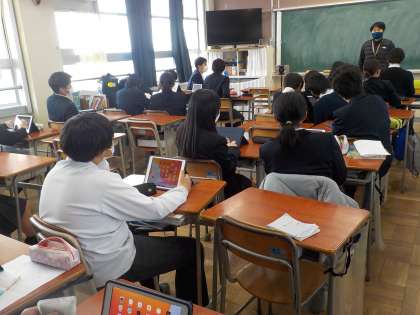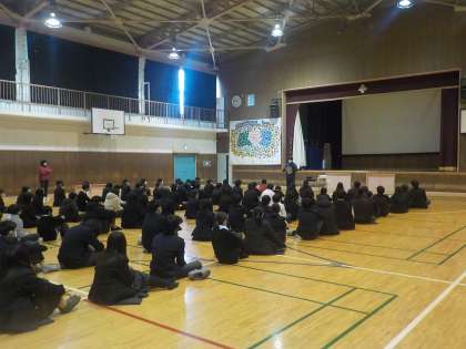 体育館でビデオを見て、教員からの話を聞いてから、教室でアンケートなどを行いました。