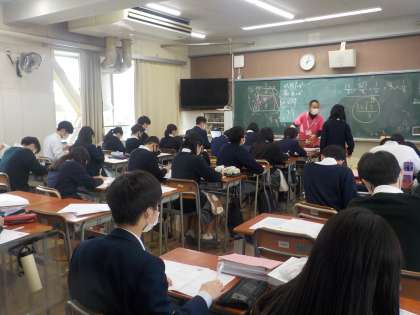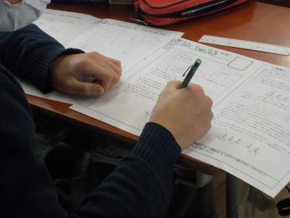 教員からの説明を受けた後、プリントの課題に挑戦です。