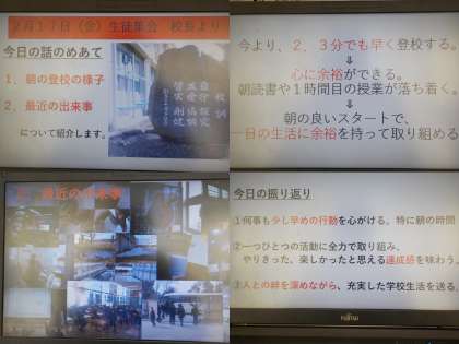 8:50からリモート形式の生徒集会を行いました。