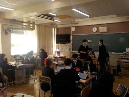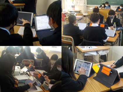 活発に意見交換したり、他の人のiPadを見ながら、課題解決を図っています。