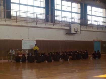 この時間は、初任者教員の研究授業になります。保健体育科の教員の他にも、たくさんの教員が授業観察に訪れました。